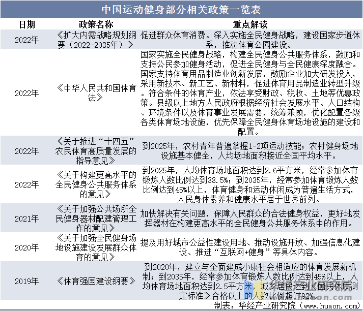 体育熬炼关系国平易近身心健康,近年来,我国高度注沉体育财产的成长,接踵出台《体育强国扶植纲要》、《全平易近健身打算》等纲要性文件,批改《中华人平易近国体育法》,激励对健身行业投入更多资金,加强全国范畴内健身的根本设备,扩大体育产物和办事的供给,以提高全平易近健身勾当的参取度,推进全平易近健身取全平易近健康深度融合。政策利好,无力支撑公共活动取全平易近健身,无望鞭策公共市场持续渗入扩容,为活动鞋服行业成长创制了有益前提。